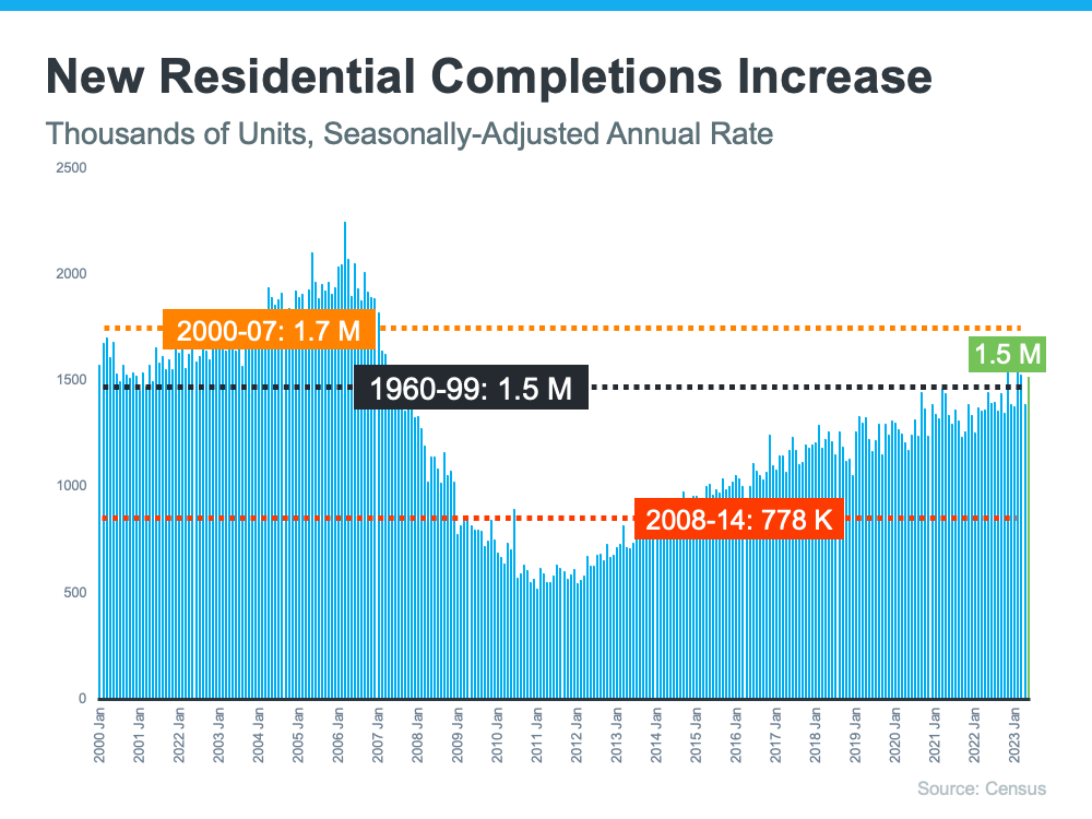 More newly built homes in various stages of the construction process means your pool of options just got bigger. If you’re looking to move right now and timing is important to you, reach out to a local real estate professional to explore the homes that were recently completed in your area. If construction is done on those homes, you should be able to move in quickly.